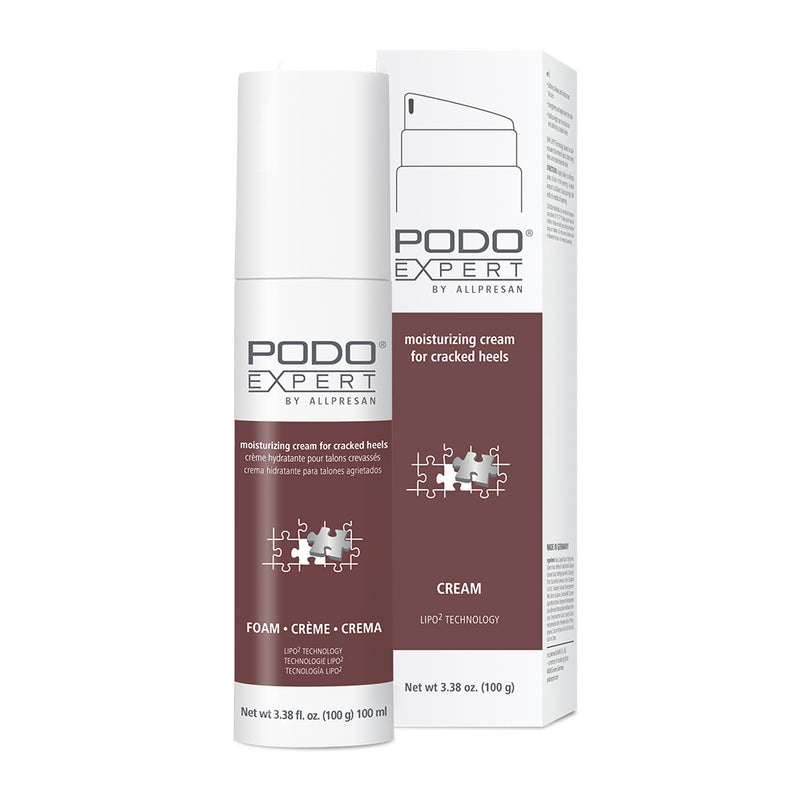 Podoexpert Repair Cream by Allpremed was developed for the daily care of cracked skin on the heels. It repairs and regenerates the protective skin barrier and hydrates the skin. The cream contains patented LIPO2 Skin Repair Technology based on skin-related lipids, which fit perfectly into the damaged skin barrier to strengthen, protect and repair it.